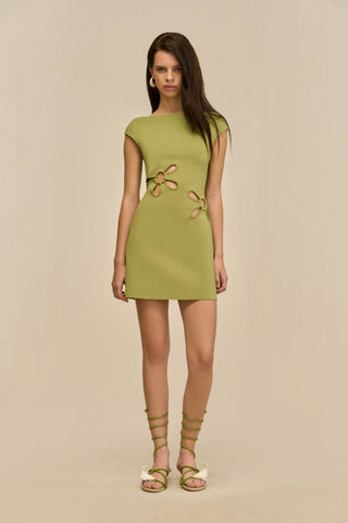 Yudi Knit Dress with artful cutouts at the front bust and waist that resemble delicate blooms.