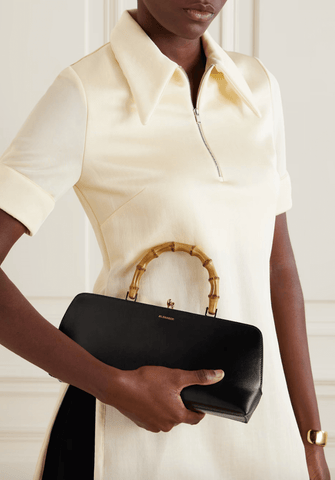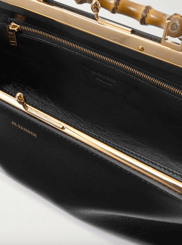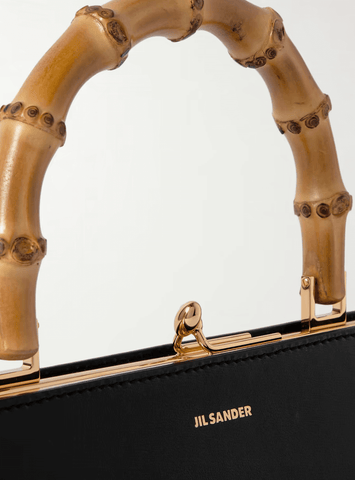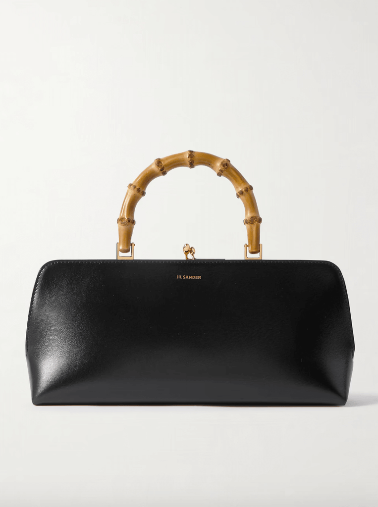 Jil Sander's 'Goji' tote is topped with a bamboo top handle that adds a sculptural edge to the otherwise minimal design. It's been crafted in Italy from supple leather and stamped with the logo in gold lettering. Stow your phone, cards and lipstick inside.