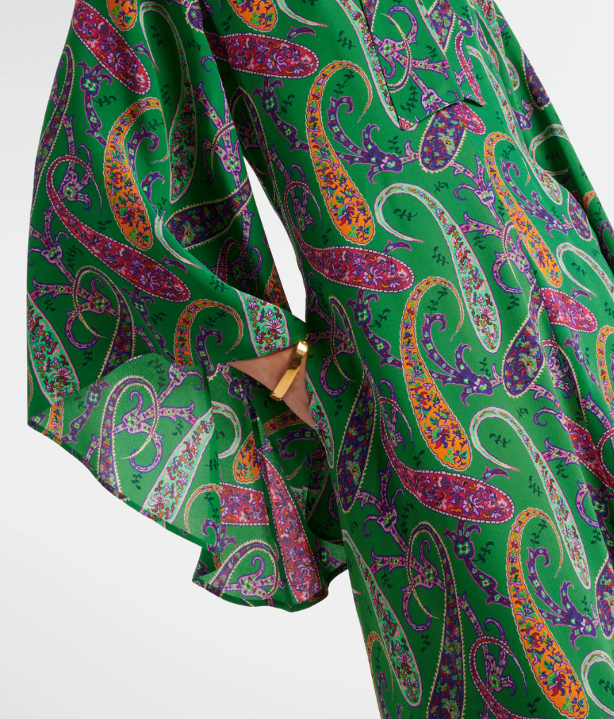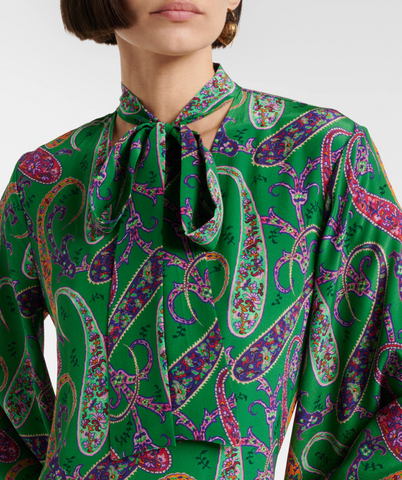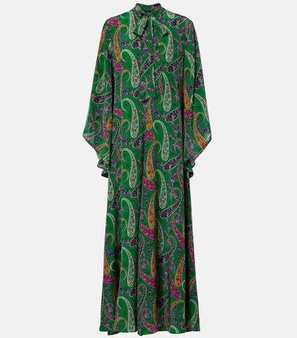Silk Long Dress With silk scarf and floral paisley motif