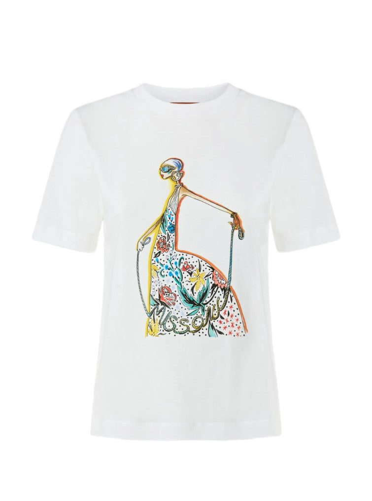 Cotton Jersey Crewneck T-Shirt with Print and Logo