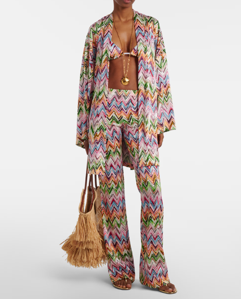 Flared pants with lace pattern and zigzag motif