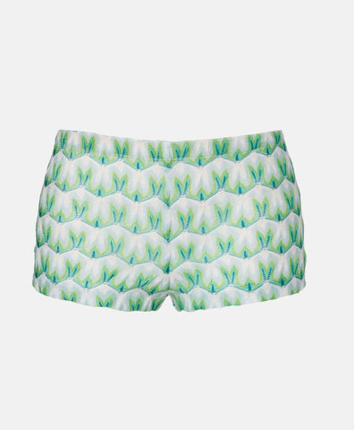 Shorts in viscose with green and blue floral pattern