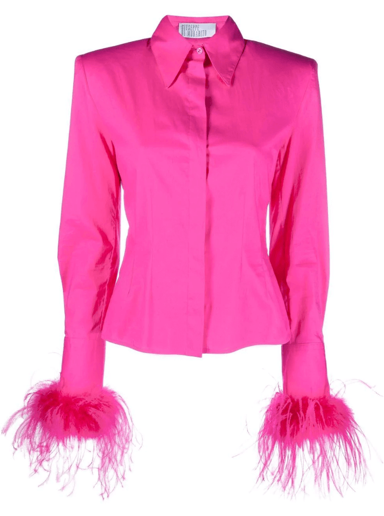 Cotton poplin cut out shirt with ostrich feathers detail