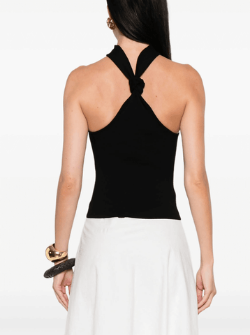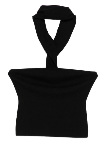 A versatile strapless knit that can be worn two ways: as a choker top or a halter top with a knot front detail.