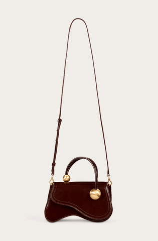 A sculptural leather silhouette with a convertible crossbody strap with a magnetic snap and back pocket.