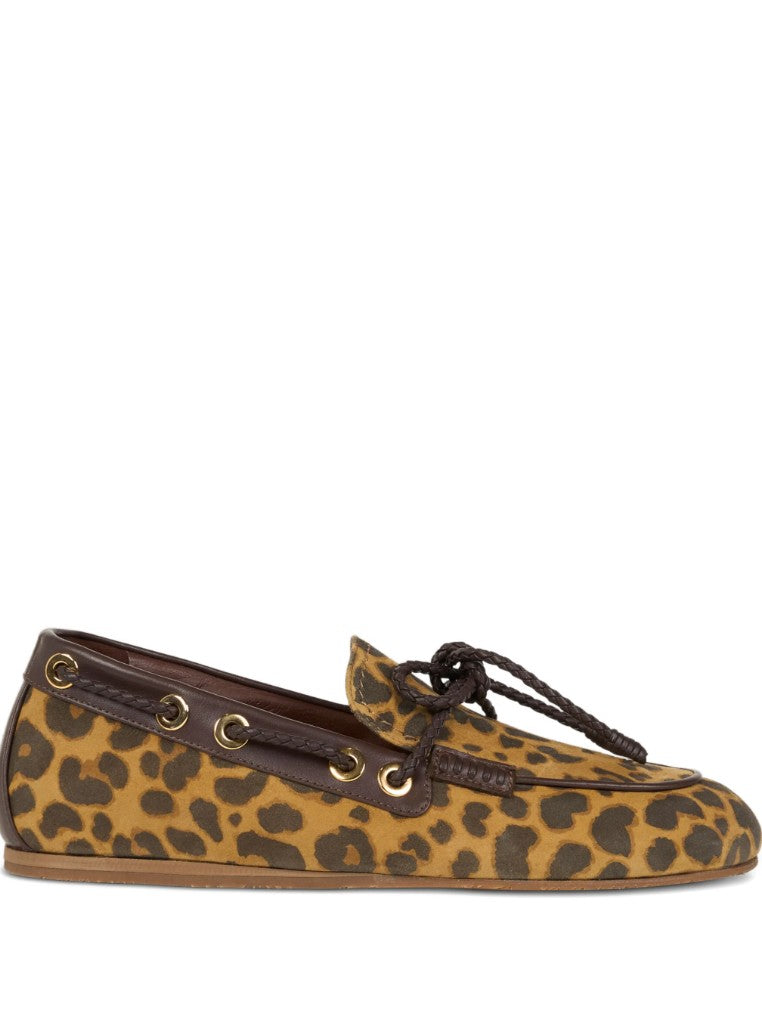 Suede boat loafers with animal motif