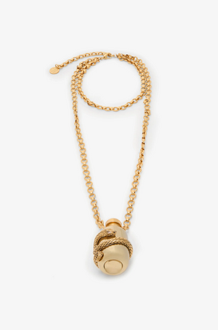 Antiqued Gold Necklace with Pendant and Snake Motif